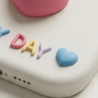 Brighten your mood and your phone with the "Happy Day" Heart Cherry 3D Relief Case. Designed for those who love a playful, feminine aesthetic, this case transforms your iPhone 17 into a sweet accessory. The centerpiece features two large, puffy pink hearts hanging like cherries from a white silicone bow, surrounded by a constellation of yellow, blue, and purple pastel hearts.