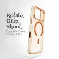 iPhone 17 Series Crystal Clear Case With Magnetic Ring & Camera Control Button — Orange Frame
