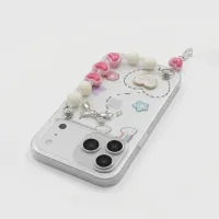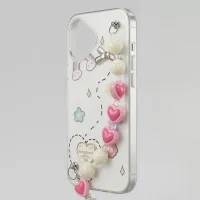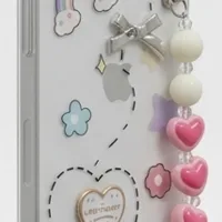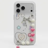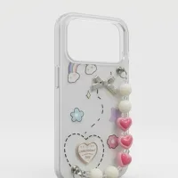- Beaded Charm Strap: A detachable, handmade-style wristlet featuring pink resin hearts and pearls—perfect for extra security while taking photos or multi-tasking.