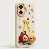 Add a touch of joy to your daily tech with the Twinkle "Apple Friends" 3D Relief Case. This isn’t just a phone cover; it’s a piece of miniature art. Featuring a pair of sweet-faced apple characters suspended by a yellow bow, this case utilizes high-relief molding to bring your phone to life. The cream-colored background is accented with raised gold stars and multi-colored dots, creating a "Twinkle" effect that is both visual and physical.